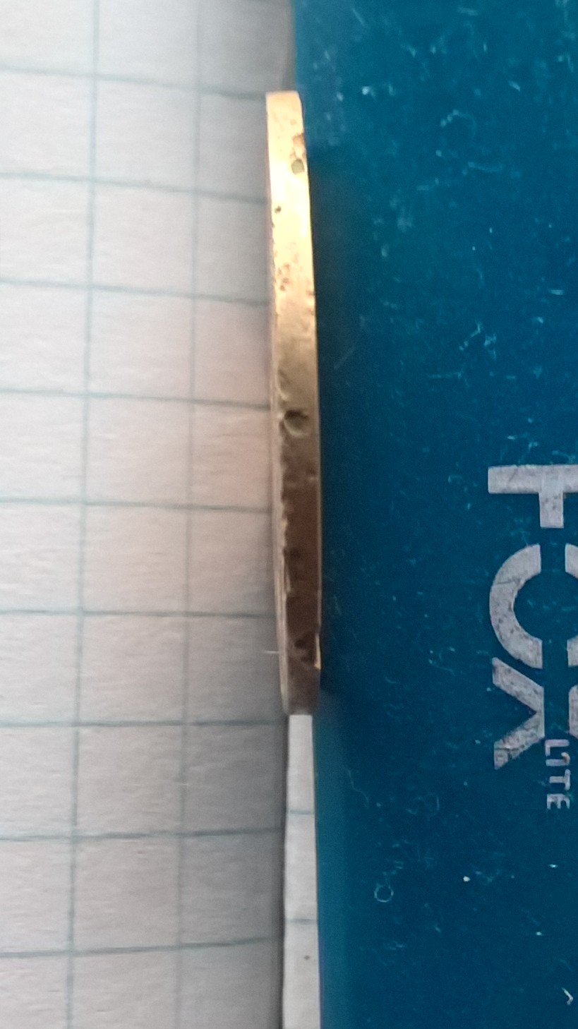 QUOTE(TyTaH @ Jun 6 2020, 19:35) Друзья Всем привет! Следующая ситуация, 5 копеек 1928 года но гурт не ребристый а гладкий. Монета копанная,микрометр показал 25 мм диаметр монеты. Следов рукоблуда я не увидел.Любой комментарий как воздух. С фото у вас как то плохо.Заранее спасибо. Ну вот , с куда "оформить" вашу монетку ( в какую тему) разобрались . Теперь , что бы что то понять , нужны дополнительные фото . Первое - по всей окружности гурта( 3-4 фото) . Второе - по замеру диаметра понятно - 25 мм ,но вот хотелось бы ещё вот типа такого фото , что бы иметь представление лучше ( две монетки , одинакового номинала, близких годов, одна "лысая" , другая с рифлением ,ставятся друг рядом с другом на ровной поверхности .) Нам надо увидеть есть ли разница по "высоте" ( диаметру) . Сообщение отредактировано Мы не курим: Jun 6 2020, 20:07 Вложенные эскизы изображений |