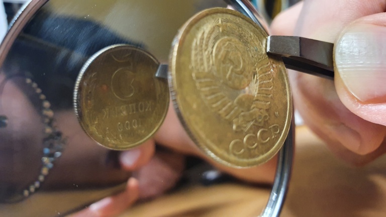 QUOTE(vorobushek @ Dec 14 2020, 15:42) Здравствуйте,нашел при переборке банки советов 5 копеек 1990 г М,подскажите она на самом деле редкая? Здравствуйте. Да редкая.Обычно только картинки делают через зеркало.что -бы точно увидеть.что это М.А то шутников тоже много на нум.рынке. |