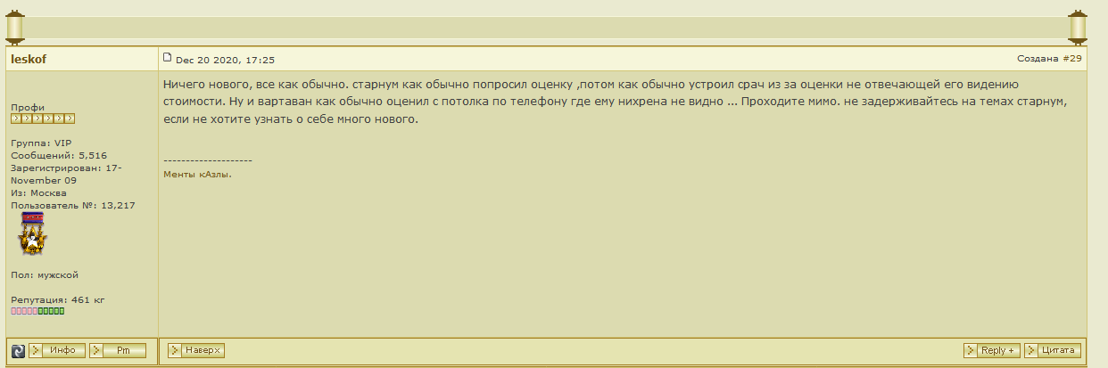 QUOTE(Kornous @ Jan 6 2021, 15:31) Вот и не суй свой тупой нос в то, в чём ни уха, ни рыла... Аристократ, твою дивизию... Ты мне ... не нужен, это ты лезешь в мои темы. Сообщение отредактировано старнум: Jan 6 2021, 15:42 -------------------- Не могу давать отзывы.