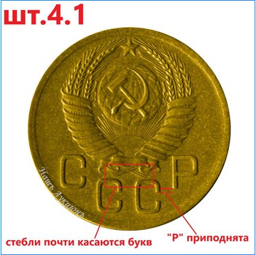 QUOTE(Оргонавт @ Feb 24 2021, 11:32) да я и не знаю каталог это или нет набрал в интернете 3 копейки 1950 года открыл первое что было прочитал вроде оно. 1. Бронза, 3.00 г, 22.00 мм. Лиц. ст.: шт. 4.1* – без венчика, буква «Р» вниз. Об. ст.: шт. А – перекрестье ниже. хотел чтоб знающие посмотрели простите если что то не так. Или что то я не так написал. Да не нужно извинятся . Всё нормально . А шт. 4.1 вот (обратите внимание на положение буквы "Р" и сравните со своей . Вложенные эскизы изображений |