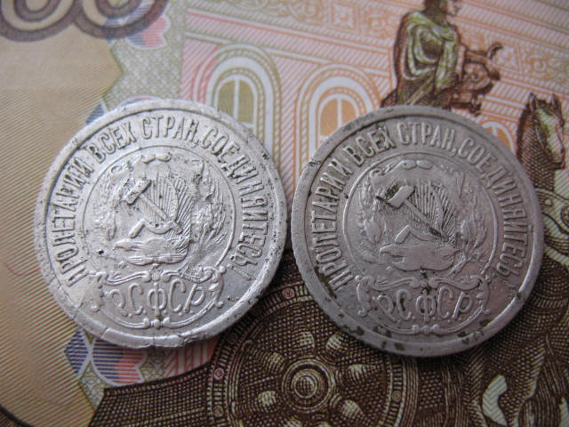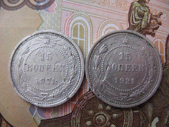 Здравствуйте, оцените две монетки 15 копеек 1921 года.