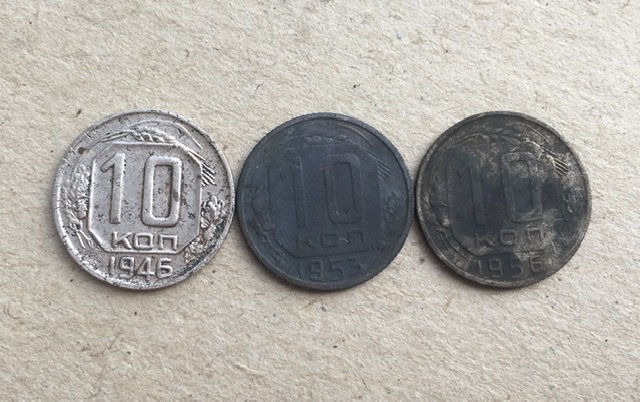 Подскажите пожалуйста по монете 10 копеек 1946. Она почему то мне покоя не дает. Все 3 монеты найдены в одном месте в воде и никакая не чищена. Вложенные эскизы изображений -------------------- Убедительная просьба вопросы по лотам задавайте до совершения ставок.