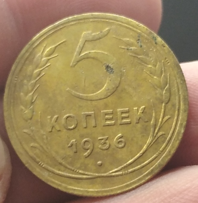 Приветствую, попалась одна монетка, для меня не понятная, решил спросить у вас совета и услышать Вашего мнения. Монетка 5 копеек 1930 года, визуально по металлу медь, вес 4.6 грамма, на металлоискателе бьет выше на 7 единиц чем обычный пятак 1930 года, перевешал все пятаки 1930 года, вес от 5.0 до 5.3 грамма, а эта как не пробовал вес 4.5 - 4.6 грамма. Верхние насечки над цифрой 5 странный в наклон, нет насечек на левой стороне колоса за буквой К .Скажите что с этой монетой не так?