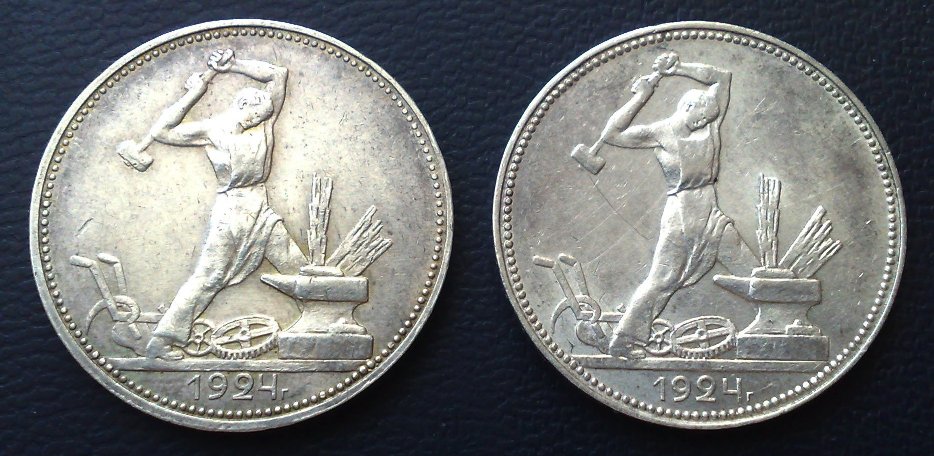Подскажите пожалуйста по разновидностям двух полтинников 1924 года (П.Л, 2 3 . 10,5 Д.). Видится разновидность (по расположению года к черте) Вес соответствует описанию 10,01 и 10,02 гр. Какой из представленных более интересен? Оценка? Спасибо! Вложенные эскизы изображений -------------------- В Вконтакте и других соц. сетях я не зарегистрирован, там не торгую и не покупаю!!!