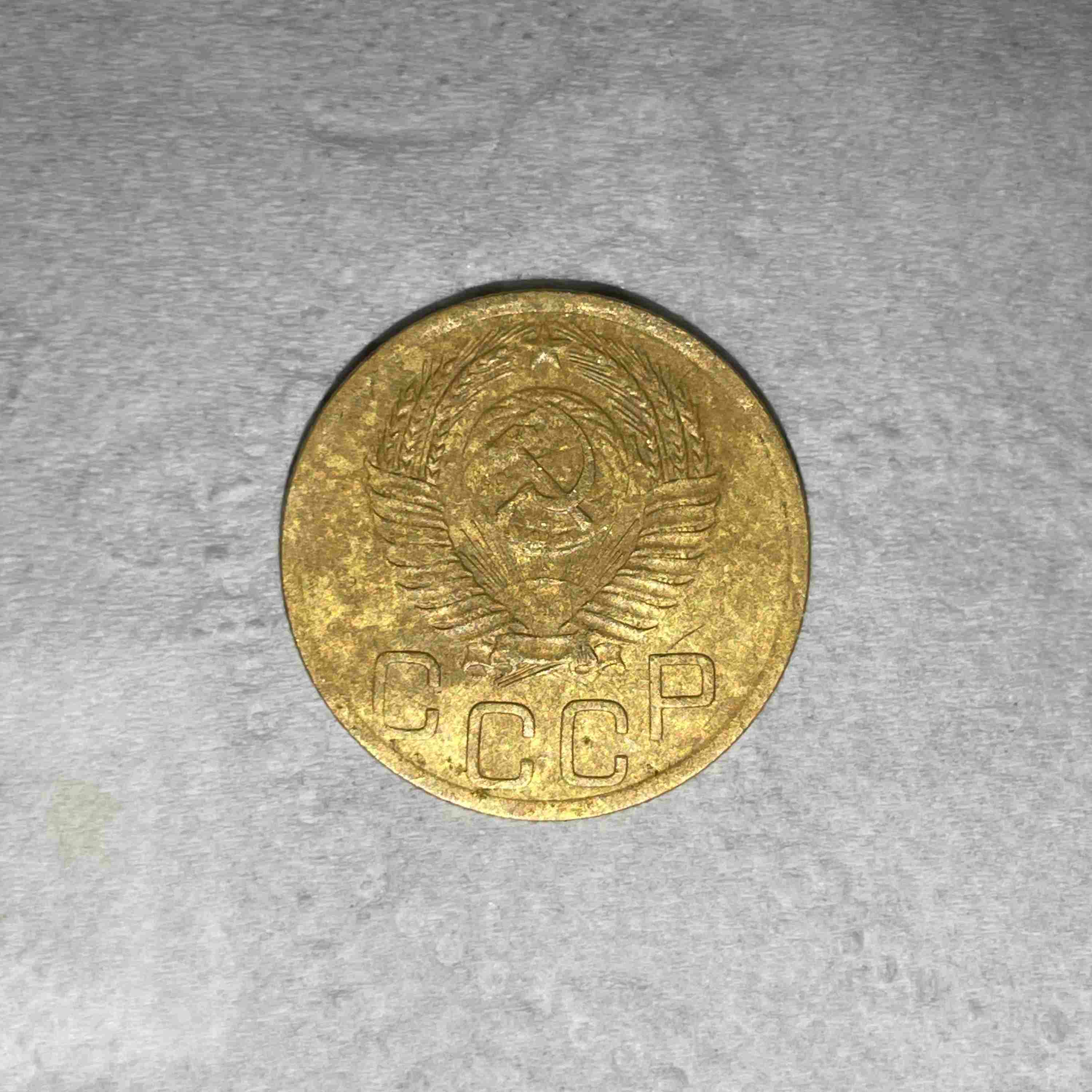 Здравствуйте! Попалась монетка 5 копеек 1945 года. При внимательном рассмотрении под цифрой 5 обнаружилось восходящее солнце с герба. Прошу знатоков определить и по возможности оценить монету.
