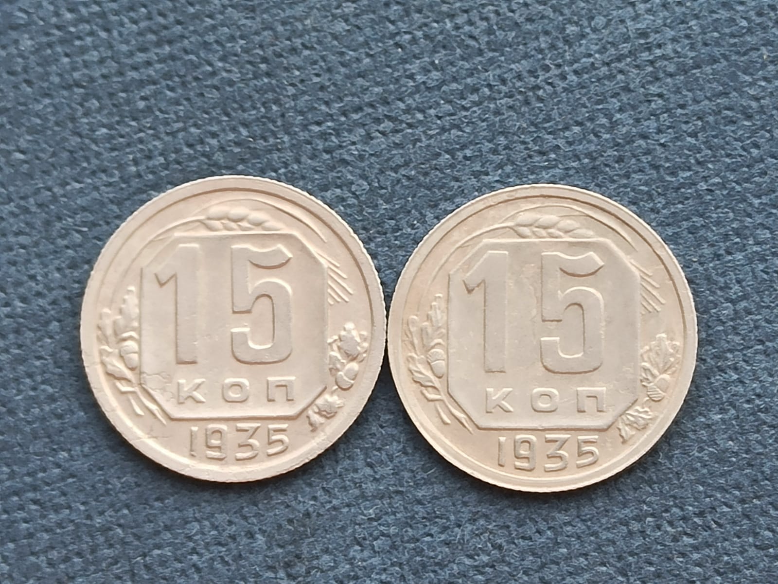 Доброе утро уважаемые участники. Помогите с определением. 15 копеек 1935 . На фото две монеты одного года. У левой подходят три меридиана к серпу, а на левой два (обычная). Является ли эта разновидность монеты интересной?