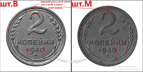 QUOTE(BeNeLa @ Aug 17 2022, 23:45) Kornous, спасибо за быстрый и развёрнутый ответ! Копеек 85 года было 6 штук, на пяти монетках ости видно чётко, хотя они в более плачевном состоянии, а на этой - в 10-ти кратную лупу не увидел, старею... Не за что! Для того, чтобы определить на копейках искомый шт. 1.42 (короткие ости), лучше смотреть на расстояние между последней "с" и "р" в СССР на аверсе... У искомого варианта эти буквы заметно отставлены друг от друга, нежели на шт. 2... |