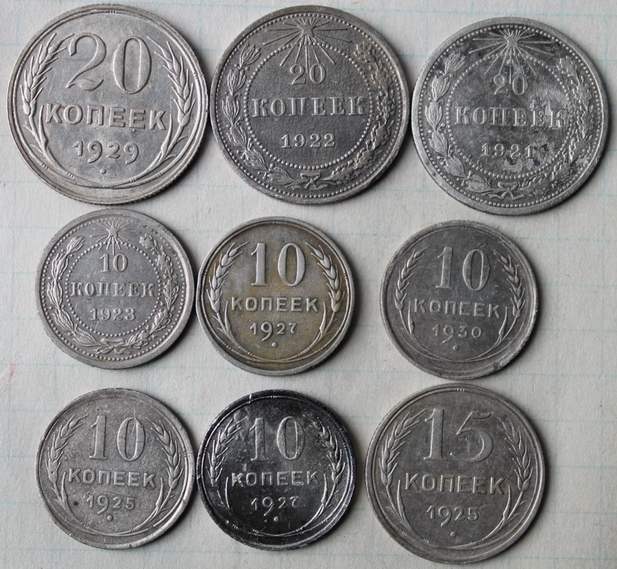 QUOTE(*Речник* @ Mar 25 2013, 13:34) Здравствуйте. 20коп 1921г в данной сохранности, примерно 800р. 10коп 1927г (обе) и 15 коп 1925г лучше сделайте фото отдельно каждой монеты почётче и покрупнее. Там разновидности есть, особенно у 15коп 1925г их много. Остальные монеты точно все простые и, скорее всего, будут не интересны. ИМХО. пожалуйста Сообщение отредактировано Romsu: Mar 25 2013, 14:26 Вложенные эскизы изображений -------------------- СБ карта 42......5284
