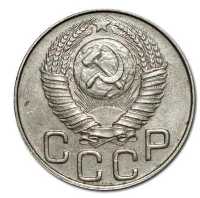 Искомая вами плоская звезда(от аверса 20 копеек 1948 года)должна выглядеть так.Я её,для себя,назвал -аляповАтой звездой-,из за формы боковых лучей.Этот вариант плоской звезды(у вас просто затёртая при обращении)очень нечасто встречается..потому и отмечена редкостью в каталогах.