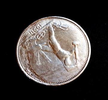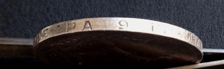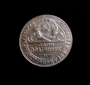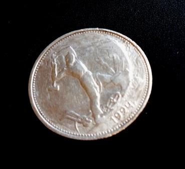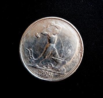 Субъективно: видится повреждение монеты уже после выхода с монетного двора, то есть в ходе её обращения или хранения. Например, сверху могла лежать другая монета, и прикрытое ей поле полтинника не пострадало в ходе пожара. А неприкрытая часть - пострадала.