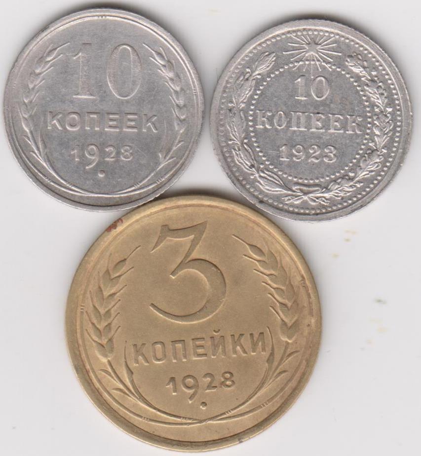 QUOTE(зверобойчик @ Nov 6 2024, 11:03) Первая монета не определил разновидность. 10 копеек 1923 года простая, пару сотен рублей. 3 копейки тоже самое, в сборный лот. АИФ 1.4Я, так же пару сотен |