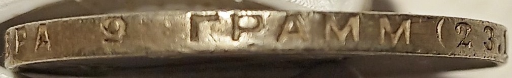 Приветствую! Попались несколько монет с таким гуртом (на фото). Выслушал разные мнения от камрадов при показе гурта - от "фуфло" и "литье" до "подлинная разновидность редкого гурта". Материал монеты - серебро, проверял хромпиком, вес -9,74г. Полагаю, что это нечастая разновидность гурта, не описанная в каталогах Адрианова и Федорина, но присутствующая в инете как "шрифт букв и цифр иной, между "ТР" и после "З" есть точка. Даже ценник на эту разновидность присутствует. Шрифт похож на тот, что и у редкого бесточечного гурта. Но сомнения остались.