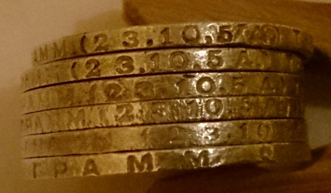 QUOTE(андриян @ Feb 18 2025, 21:51) Приветствую! Попались несколько монет с таким гуртом (на фото). Выслушал разные мнения от камрадов при показе гурта - от "фуфло" и "литье" до "подлинная разновидность редкого гурта". Материал монеты - серебро, проверял хромпиком, вес -9,74г. Полагаю, что это нечастая разновидность гурта, не описанная в каталогах Адрианова и Федорина, но присутствующая в инете как "шрифт букв и цифр иной, между "ТР" и после "З" есть точка. Даже ценник на эту разновидность присутствует. Шрифт похож на тот, что и у редкого бесточечного гурта. Но сомнения остались. Прошу форумчан, тех, кто в теме, высказать мнение по данному гурту и монете , подделка или подлинник. И если подлинник, по степени редкости такого гурта, примерной стоимости и востребованности, если выставлять монету здесь, на ауке Ревью. Заранее благодарен за ответы, с уважением. Не из этой ли партии что обсуждали на самаре? Вложенные эскизы изображений -------------------- Куплю клады ,монеты в любом количестве оптом.