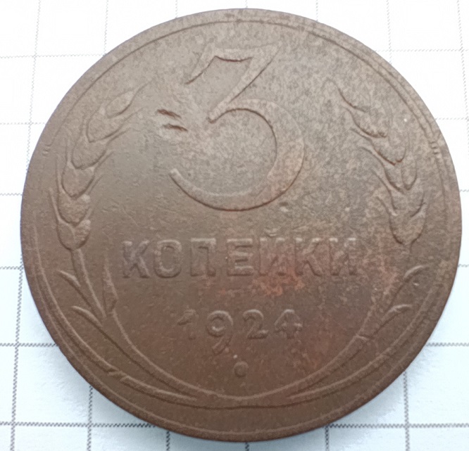 QUOTE(Тимофей. @ Mar 17 2025, 18:23) Доброго времени суток, уважаемые Форумчане! Просьба определить разновидность и сориентировать по стоимости данной монеты. Вашему вниманию 3 копейки 1924 года с рубчатым гуртом, на стеблях колосьев нет узелков. С уважением! Тут точно шт.1.1 - координатная сетка земного шара четкая и гравирована глубокими линиями. И по узелку с права это точно не Г. Тут узелок гораздо ниже . Правильно сказали выше это 1.1Б По цене в таком состоянии не шибко дорого. Вся покоцаная. По мне до 10т. -------------------- Жизнь — не зебра из чёрных и белых полос, а шахматная доска. Здесь всё зависит от твоего хода.