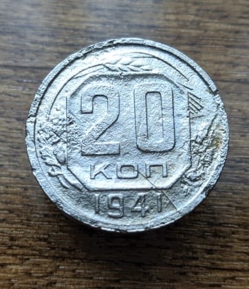 Добрый день уважаемые коллеги, помогите оценить монету 20 копеек 1941года в гербе 7 лент, если я правильно понимаю это перепутка с 20 копеек образца 1935 года. Состояние увы, но что имеем