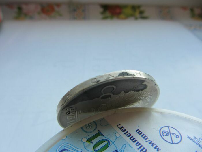 Уважаемые форумчане!Лет десять назад в куче мусора попался вот такой рублик.От нечего делать перемыл я всю эту кучу неумного никеля в разбавленой азотке.Чернота и грязь ушла и именно вот эта монета местами облезла.Сталкивался кто-нибудь с подобным?Что это может быть?Мне видится что монета с покрытием.Были ли такие?Спрашивал у многих нумизматов-ноль.пожимают плечами.Хотелось бы услышать мнение специалистов.Вес-12.73г.Диаметр-31мм.Толщина по гурту-2.2мм.
