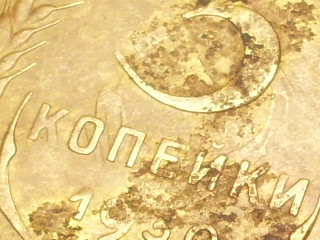 Монета просто вымыта. за время лежания, на ней белый налет появился, и я его около этой фразы просто стер пальцем. другая сторона конечно подкачала... Ну мне интересен сам факт, такое бывает?? и какова в данном случае тогда ее цена, учитывая сохран разумеется. Собственно сама монета 5 копеек 1930 г. слово крупнее |