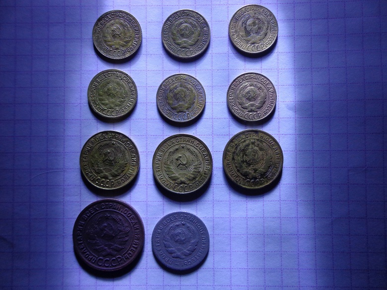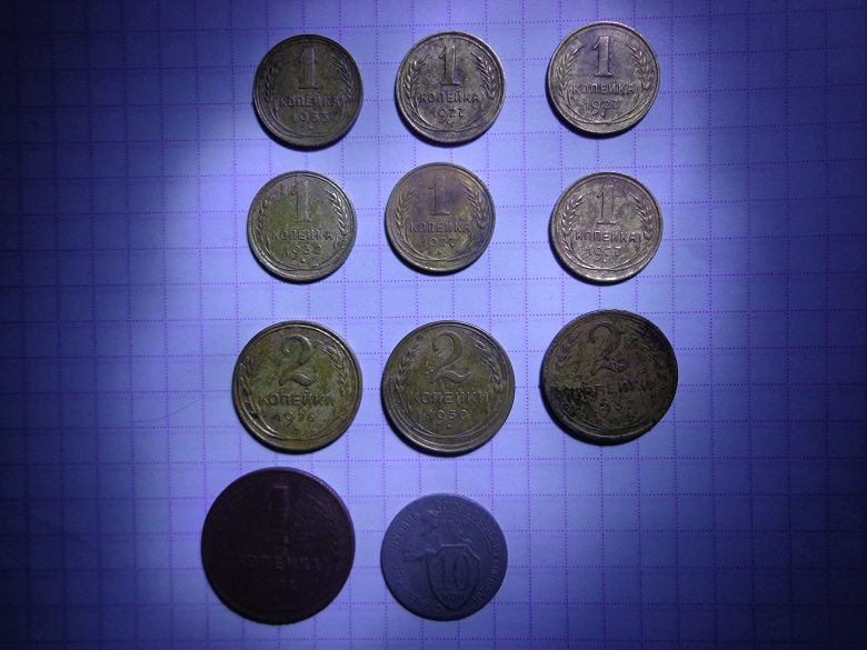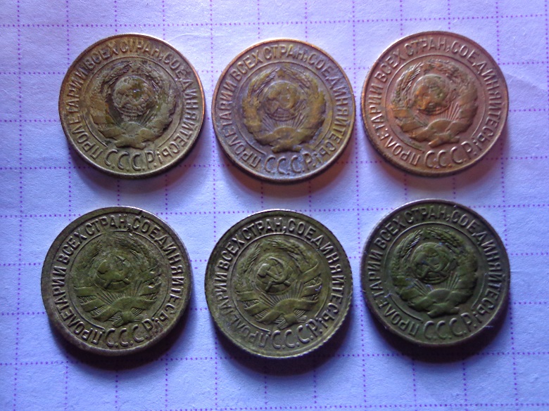 С Рожджеством уважаемое собрание! помогите с оценкой сохрана и стоимости. монетки не редкие, но кроме двух нижних не копаные. 1к 1924 и 10к 1931 после чистки (пробной), остальные лежали в старом комоде у бабушки в деревне. хотелось бы по подробнее о состоянии.