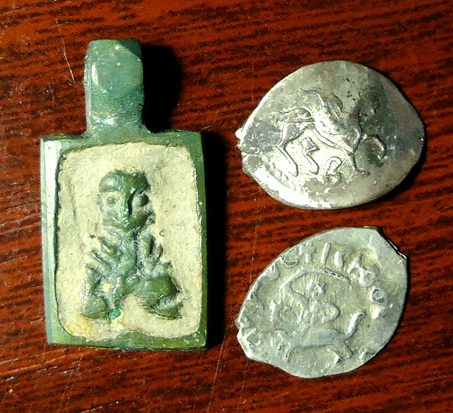 Сегодня ездил пробовать катушку. Стабильно работает. Очень понравилось. Хожу на ручной на 30. Фантомов меньше. Даже при ударе о кочку молчит. Поле перепаханное под зиму с огромными колмыхами и со следами поисковиков. Всё равно есть находки не считая разного шмундяка. Иконка нательная и две чешуйки. Точно такую же иконку месяца полтора назад нашёл. Выставлял на определение. Чешуя Дозор и помоему Шемяка.