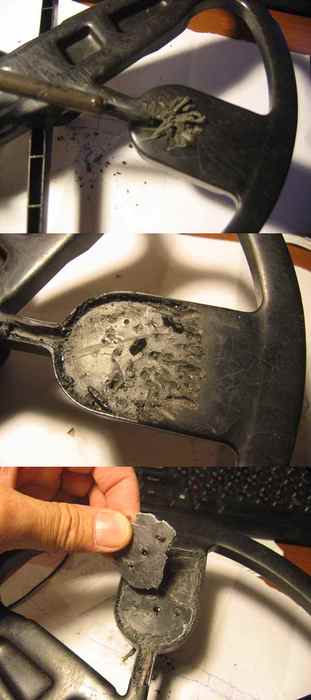 QUOTE(emkgroup @ Dec 13 2014, 23:25) Досталась очередная "убитая" катуха Minelab DD FBS 11". Уши треснули в 2-х, 3-х местах, кабелю на входе в катушку кирдык. Буду реанимировать... Итак приступим к реанимации. 1.Для начала восстановим уши. Для этого вооружимся острым ножом, подходящим куском АБС пластика(старый пульт от ТВ, кусок грязезащиты автомобиля ненужная современная пластиковая коробкаи т.д.)и моментальным клеем, лучше с активатором.(рис 01). Вырезаем накладки для ушей, можно для начала подогнать по месту бумажный вариант, потом перенести на пластик. АБС пластик легко режется ножницами по картону или металлу, потом доводится с при помощи ножа (рис 02). Для установки катушки на столе удобно воспользоваться маленькой угловой струбциной.В данном случае Китайского производства, 92 руб. в магазине ОБИ(рис.03) Сообщение отредактировано emkgroup: Dec 15 2014, 23:14 Вложенные эскизы изображений -------------------- Оплата: карта СБ № 4276........7822
