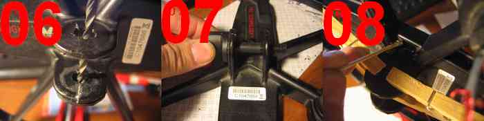 болт,используя имеющееся отверстие как кондуктор Чтобы отверстие не сместилось, сверлим сначала сверлом малого диаметра, затем понемногу увеличиваем диаметр сверла следя за тем,чтобы не испортить старое отверстие.(рис.06)Если отверстие сместилось от центра, доработать его лучше полукруглым надфилем (рис.10). Примеряем болт: он должен входить свободно без сильного люфта (Рис.07). Затем приклеиваем вторую накладку (Рис.08)и повторяем п.3 Далее все швы и стыки промазываем клеем(рис. 08) Сообщение отредактировано emkgroup: Dec 15 2014, 23:18 Вложенные эскизы изображений -------------------- Оплата: карта СБ № 4276........7822