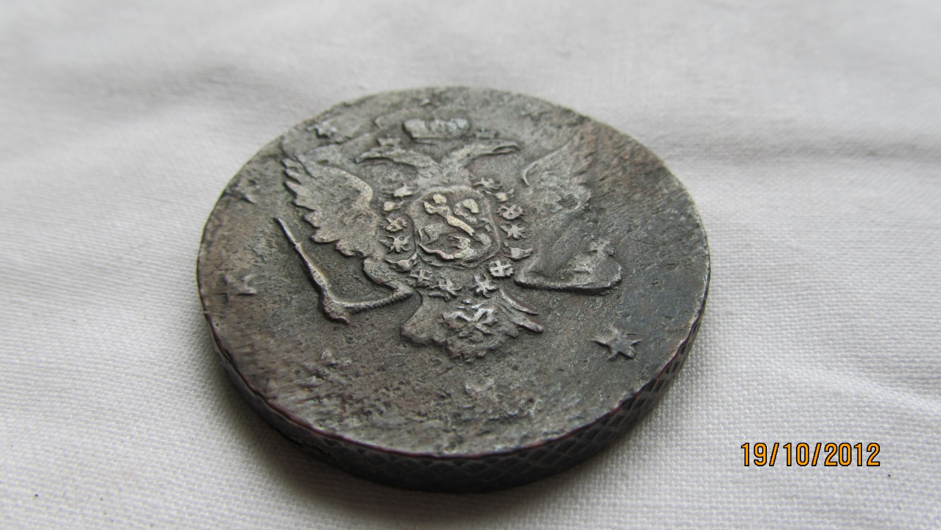 Ну слушайте,дело было три года назад,летом.Есть при вьезде в Крым,со стороны Чонгара,одно интересное место,называется "пушки".Это сразу при вьезде на крымскую землю,по московской трассе стоит памятник воинам зенитчицам,два зенитных орудия(кто ездил в Крым на авто,тот знает).Прямо напротив этого памятника,через дорогу,находится старинная батарея,рвы,окопы,огневые точки и даже дот.Места конечно оч.интересные,оборонительные сооружения и поВОВ,и гражданская воина и бог знает что еще.Компания комрадов,высмотрев на Шуберте,рисунки рва и старинной батареи,решилась рвануть туда.Заправив авто,набрав еды и водки,через пару часов были на месте.Предварительный осмотр на месте показал что старинная батарея "на месте"и можно сказать в первозданном виде.Что она представляла собой?Земляной вал до трех метров высотой в форме прямоугольника метров 70 на 30,с входом с тыльной тороны и пушечным двориком,с которого открывается прекрасный вид на пост ГАИ КПП "Чонгарский".Расчехлив приборы камрады кинулись на обследование территории.Кто прозванивал ров,кто вокруг батареи,кто склоны защитного вала.Находки не шибко радовали,огромное количество разных гильз(и гражданка и вов) и при входе в батарею была найдена татарская чешуйка и все.Но вот один из камрадов прозванивая пушечный дворик,нашел ядро,и понеслось,ядра,разных размеров,перли как глухонемые.Весь пушечный дворик и его склон были прям ими усыпанны.Но самое интересное началось когда один из комрадов,прямо внутри батареи,как раз напротив пушечного дворика зацепил хороший сигнал.Следует заметить,что внутри батареи,ходить было практически не возможно,т.к. очень сильные заросли камыша и маслины.Так вот,сигнал оказался куском плавленного свинца кило на два,а рядом еще несколько таких кусков.При внимательном осмотре этих кусков,было замечено,что в свинце вплавленны какие то "кругляшки"оч. похожие на Екатериненские пятаки.После изьятия кругляшков из свинца(при помощи нагрева и электролиза) комрады имели семь десятикопеечников 1762г. как перечекан,так и на гладком кружке. На следующий бень была произведенна шурфовка данного квадрата,и найденно два 25копеечника Екатерины.Ну вот вкраце и вся история. |