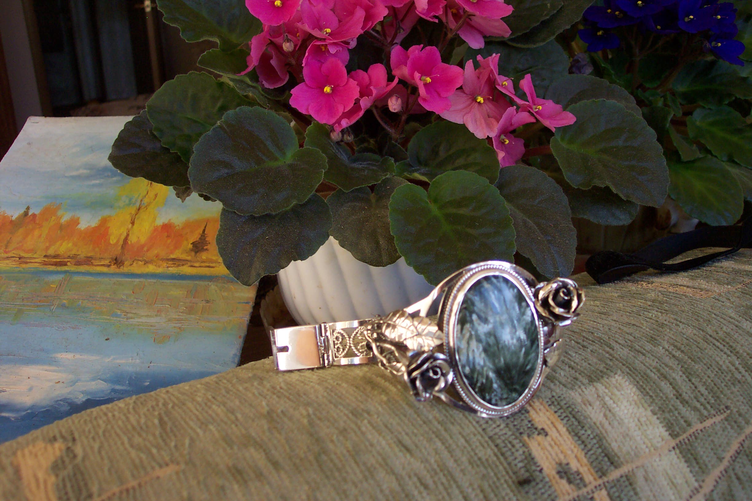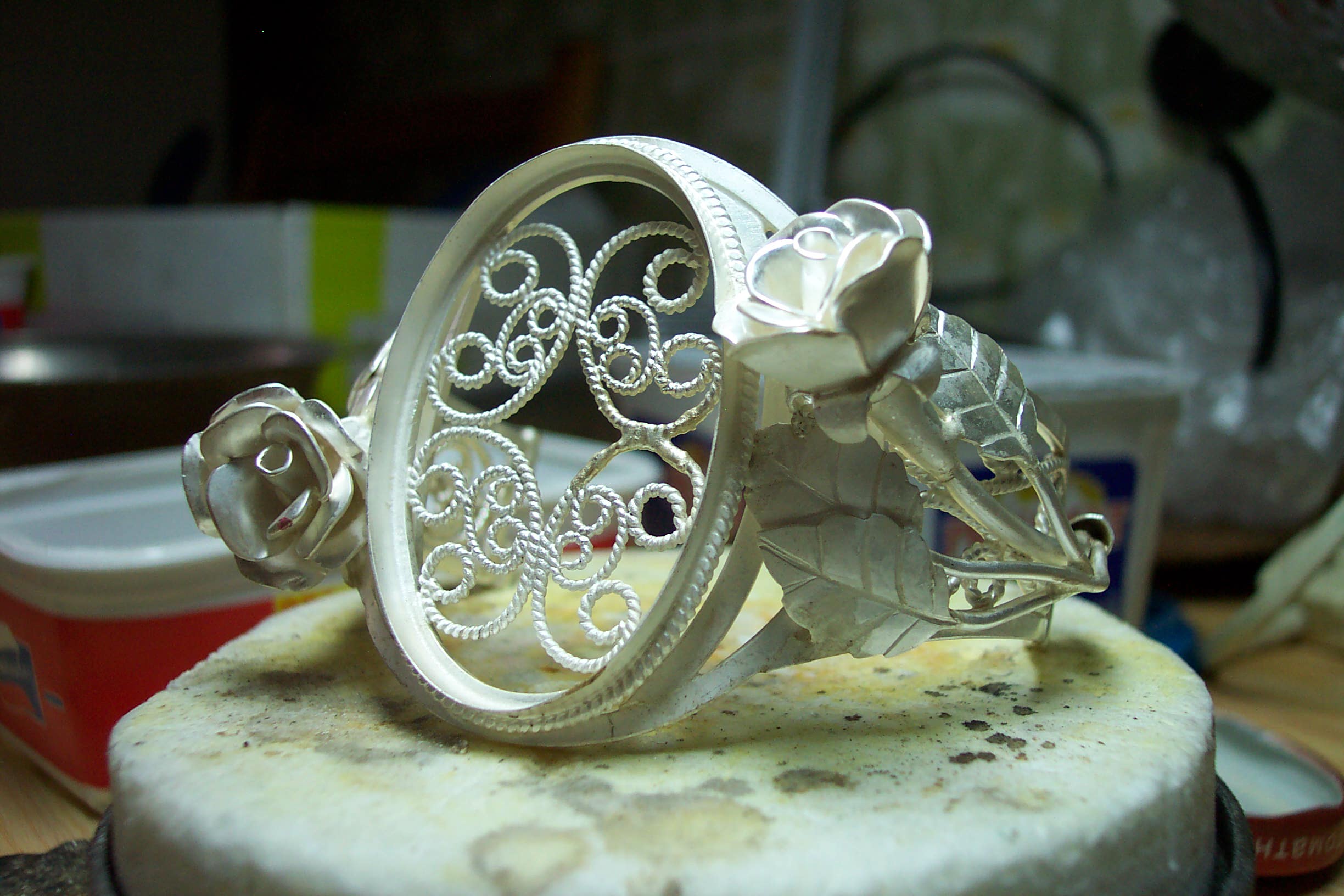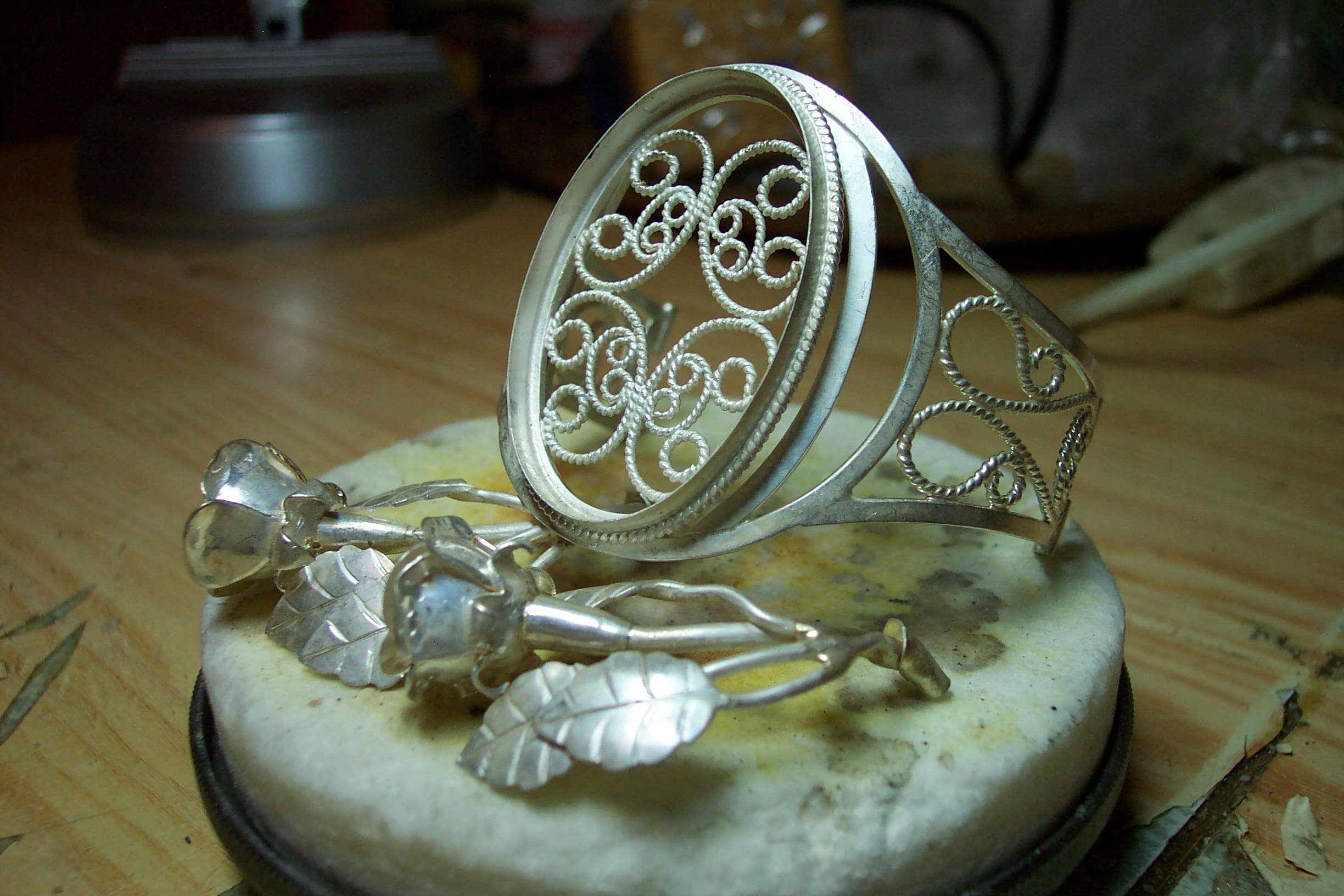 Всё делается своими руками в том числе и замки.. Любой ювелир свободно их делает.Покупалось только серебро. Изнутри скань на оправе камня для того, чтобы рука с камнем не соприкасалась. Многие дамы почемуто не любят это и просят именно так сделать. Но это по желанию вообщето.. А так ещё и для обладателя приятно. Вроде изнанка, а смотрится красиво когда снимешь..