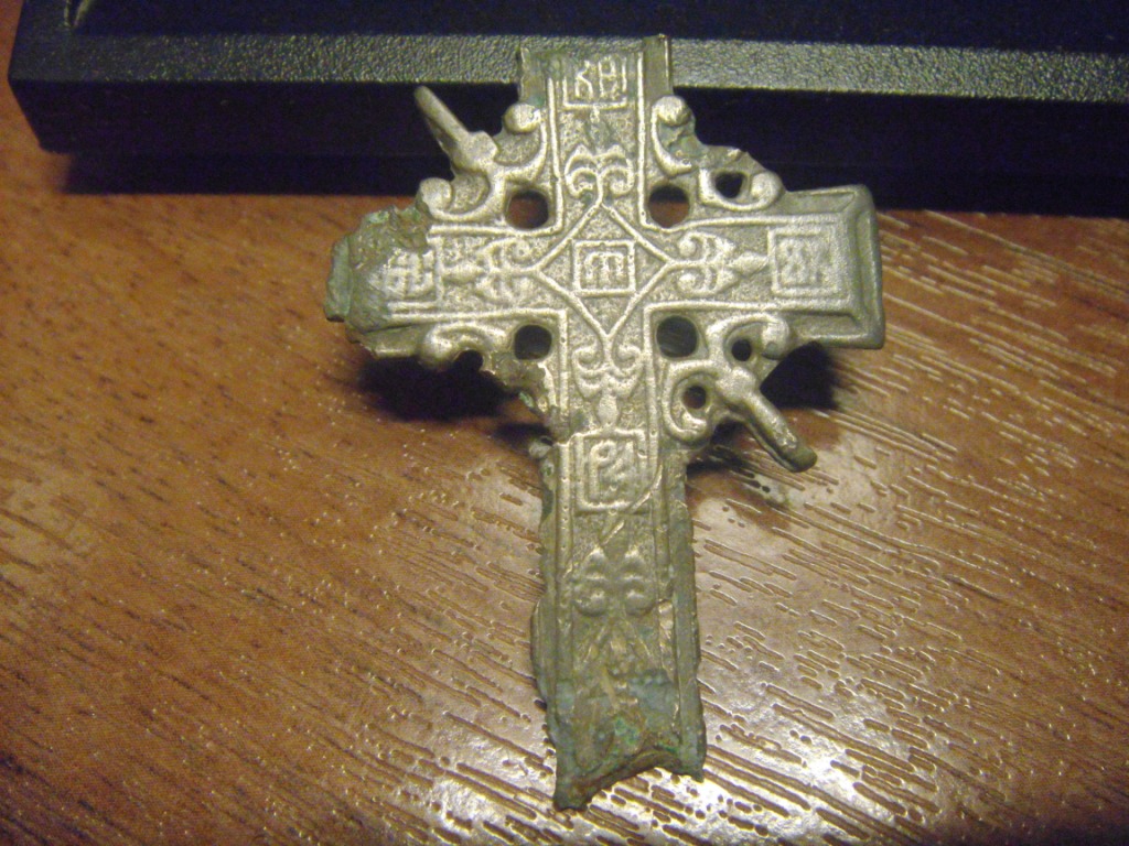 Саш,а не может быть он плакинированый или типа оловянистой бронзы,не нравится мне такая зеленка,мне кресты с такого сплава попадались,та же зелень,как на твоем,края крестов буквально сожраты,как кислотой.Похоже на окислы солей меди.но надо смотреть.на фото не понятно.