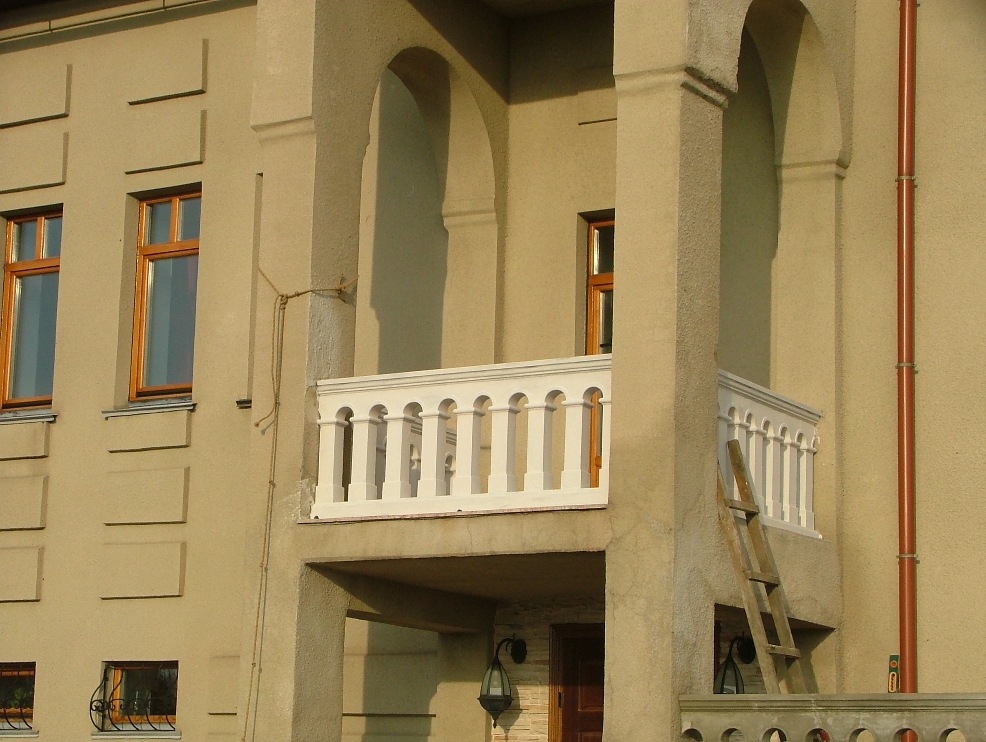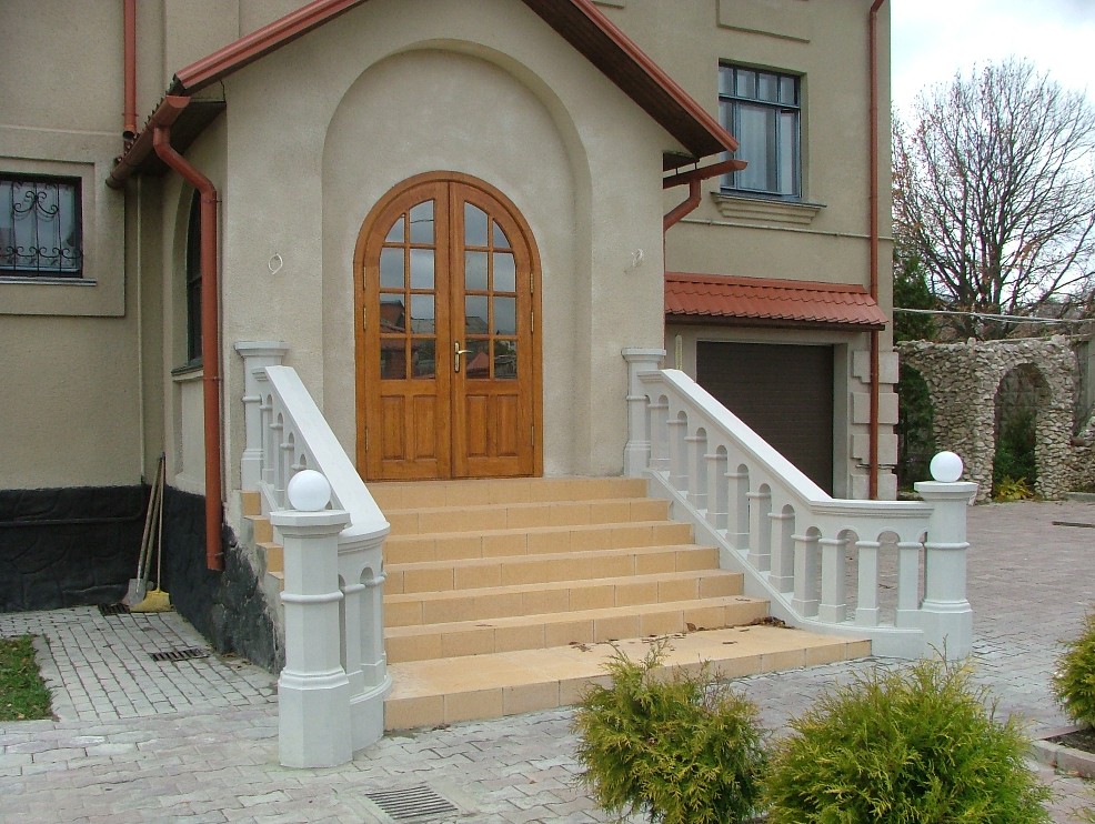 Лет несколько тому назад, обратился ко мне один человек, с просьбой сделать что-нибудь с парадной лестницей его дома, ну и дальше по кругу. Как пример показывает мне журнал Московского издания, сейчас уже не помню какого. Копировать не стал, выполнил эскизик с некоторыми изменениями, и с его одобрения, в путь… В результате получилось как-то вот так ;
