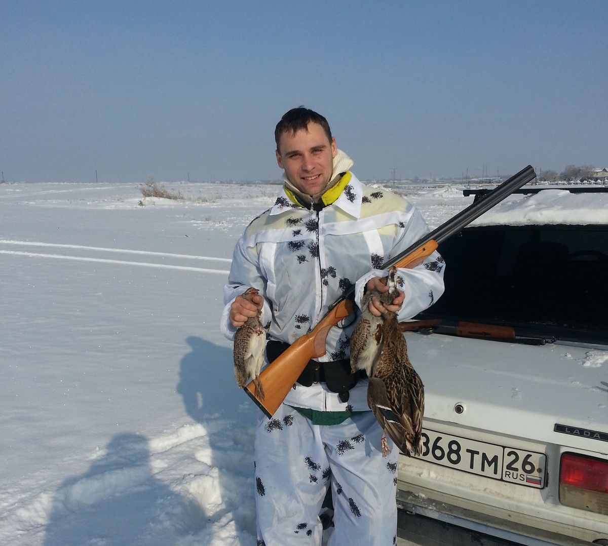С копом не ладится, выбрался к вечеру по ползать по сугробам за мясом. Сижу.... щипаю...