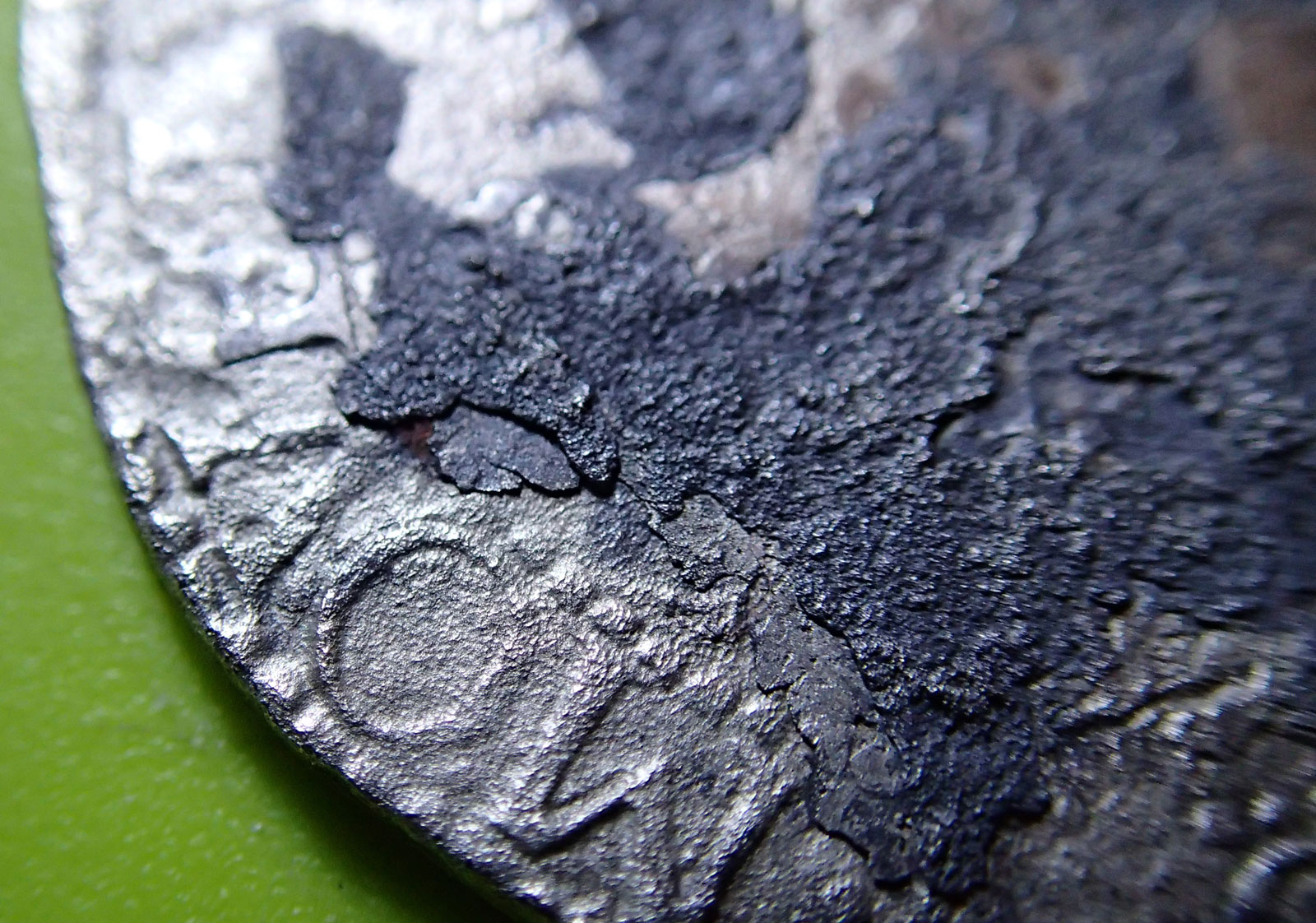 Дааа вот что может сделать время + почва+вода+аммиачная селитра (удобрение) + в обилии железки ржавые + чёрт его знает что Обидно до чёртиков, слой был в два раза превышающий саму монетку с каждой стороны. Сначала отваливалась как ни странно ржавчина ,потом соли меди (по цвету медного купороса в воде+трилон-Б) Отмачивал трилоном и фсё Вот продолжение ужаса И вот более ближе ужас А после такой фотки , тем более что это на серебрухе вообще спать невозможно [attachmentid=1874268] Потеряна вобщем напроч Воот ещё не удержался , сверху часть нормального слоя а потом пчемуто гадость [attachmentid=1874269] Всё точно потерянна ,чуть в глаз не получил кипятком Только начала вода вскипать даж не вскипать а так пузырики пошли на дне ,кааак стрельнет фонтанчиком из плошки Свалило часть монеты так сказать фото даж не выкладываю сам пока в шоке Объединил 6 сообщений подряд. Замечание- мультипостинг. Сообщение отредактировано Дайм: Jan 5 2014, 18:11 Вложенные эскизы изображений |