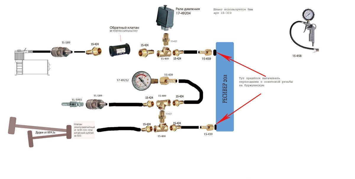 QUOTE(Tanto @ Aug 25 2014, 17:41) Знать бы как собрать это всё правильно. кстати простенькая схема... на которую недавно наткнулся... ну а чего за риски ее не правильно собрать... ну травить будет... ну если ресивер с аварийным сбросом... ну сбросит лишнее... чего там страшного может быть... Вложенные эскизы изображений -------------------- "Бойтесь своих желаний — они имеют свойство сбываться" (с)