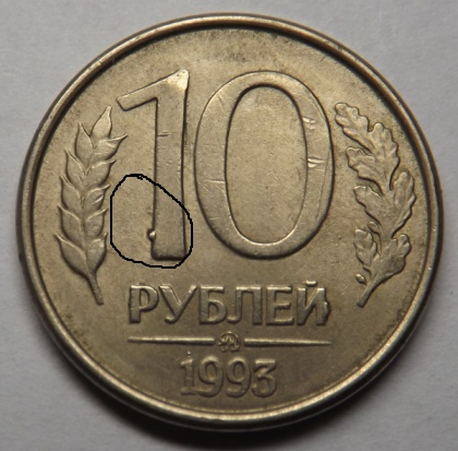 дефект гальванопокрытия, массовый, снижает стоимость монеты - 1 р. 1997 г. с небольшим наклоном оси аверс-реверс; поворот 1-30 градусов не стоит денег, максимум бонус рублей 10 (и сохран монеты плохой). 45 или 90 градусов в цене. - 10 р. 1993 г. с дефектом штемпеля; - 10 р. 1993 г. "низкий рельеф"?; никаких дефектов штемпеля, а износ штемпеля, что было массовым явлением из-за низкой цены монет, штемпели работали по долго до полного износа. Мусор, а не монеты. - 10 р. 1992 г. плохо прочеканена + сдвиг штемпеля; нет сдвига, все износ дешевой ходячки. - 10 р. 1992 г. выкрошка и сдвиг штемпеля; выкрошка есть, но не красивая, маленькая, не стоит внимания. - 10 р. 1992 г. раскол и сдвиг штемпеля; раскол мизерный, так что никому не интересен. Полный, множественный раскол, раскол с жирной выкрошкой в цене. Итог: ни одна монета не стоит внимания. |