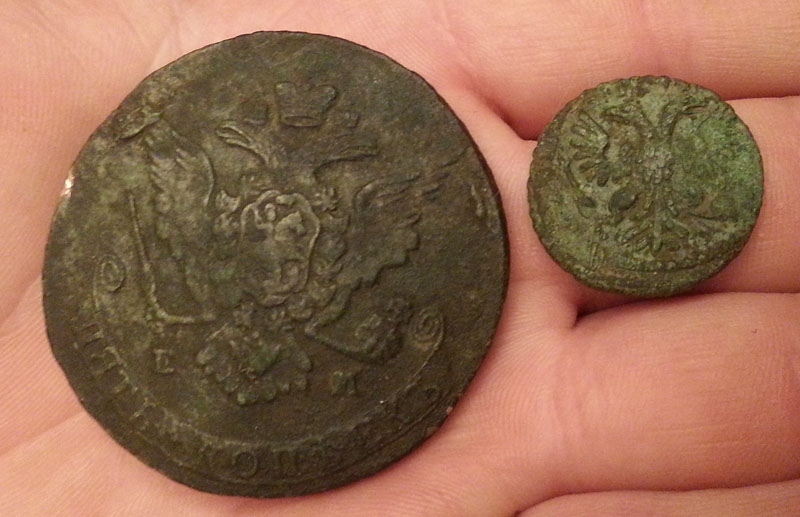 Приветствую . Попалась вот такая деньга. Вроде нечастая. Подскажите по цене в такой сохранности. А то что то проходов не нашёл. Заранее спасибо. Похоже никто не знает.