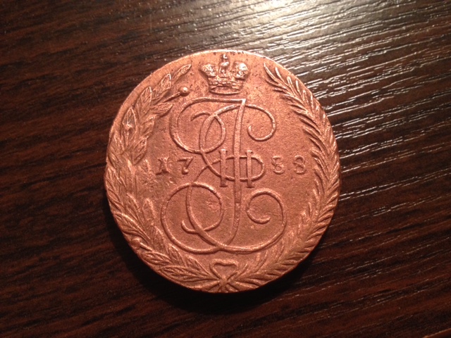 Господа, прошу помощи в оценке. 5 копеек 1788, Орел 1780-1787. Вензель и корона меньше. Биткин # 640 (R1) , Петров 3 руб. , Ильин 3 руб. Цена в такой сохранности 4000-5000 руб. (ИМХО) -------------------- Если я выиграл Ваш лот,сообщите пожалуйста в личку.