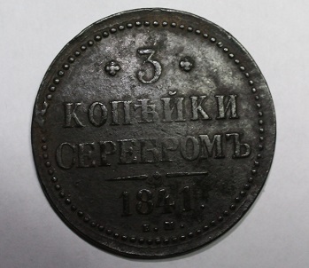 Прошу оценить монетку 3 копейки серебром 1841 года не чистилась