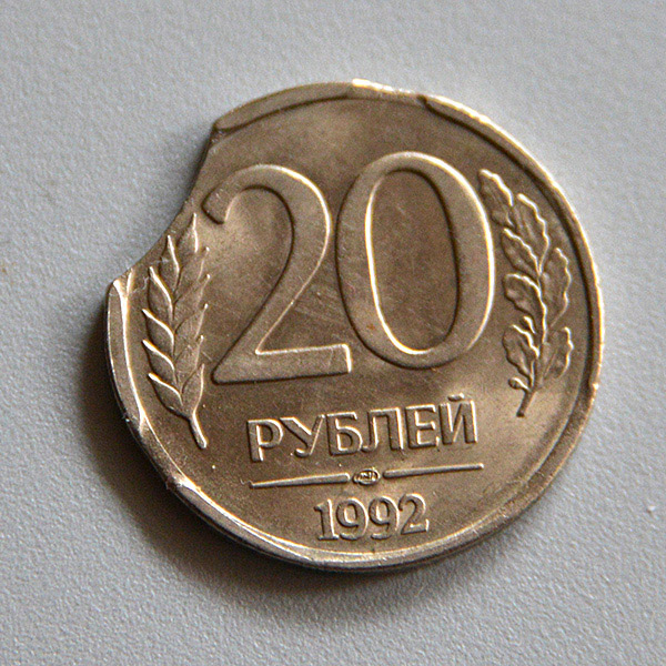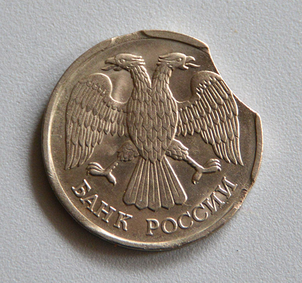 Подскажите по монетке - это брак или ее жизнью побило? И стоит ли чего, если брак? |