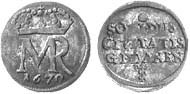 Шеляг. 1670. Михаил Корибут. Аверс - коронованная монограмма "MR" и год. Реверс - "SOLIDUS / CIVITATIS / GEDANEN" / герб города. Гданьск. Серебро.Сколько они стоят?