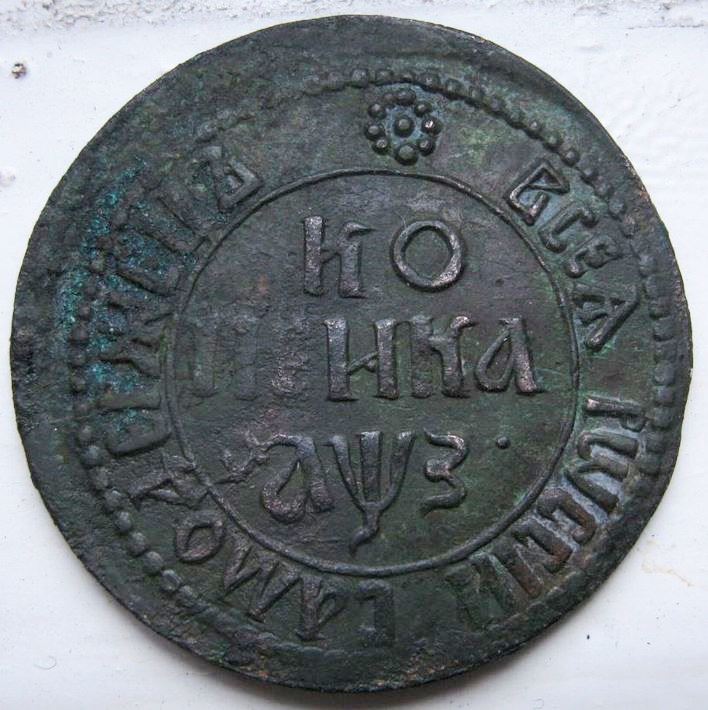 Знакомый попросил оценить Копейку 1707 года БК. Монета мне сразу показалась необычной - больше по диаметру и тоньше, чем другие Петровские копейки. Диаметр монеты - 31 мм., вес - 6,88 гр. Сказал что, никакой чистке её ещё не подвергал. Его интересует степень редкости и цена, с цель дальнейшей продажи. Вложенные эскизы изображений |