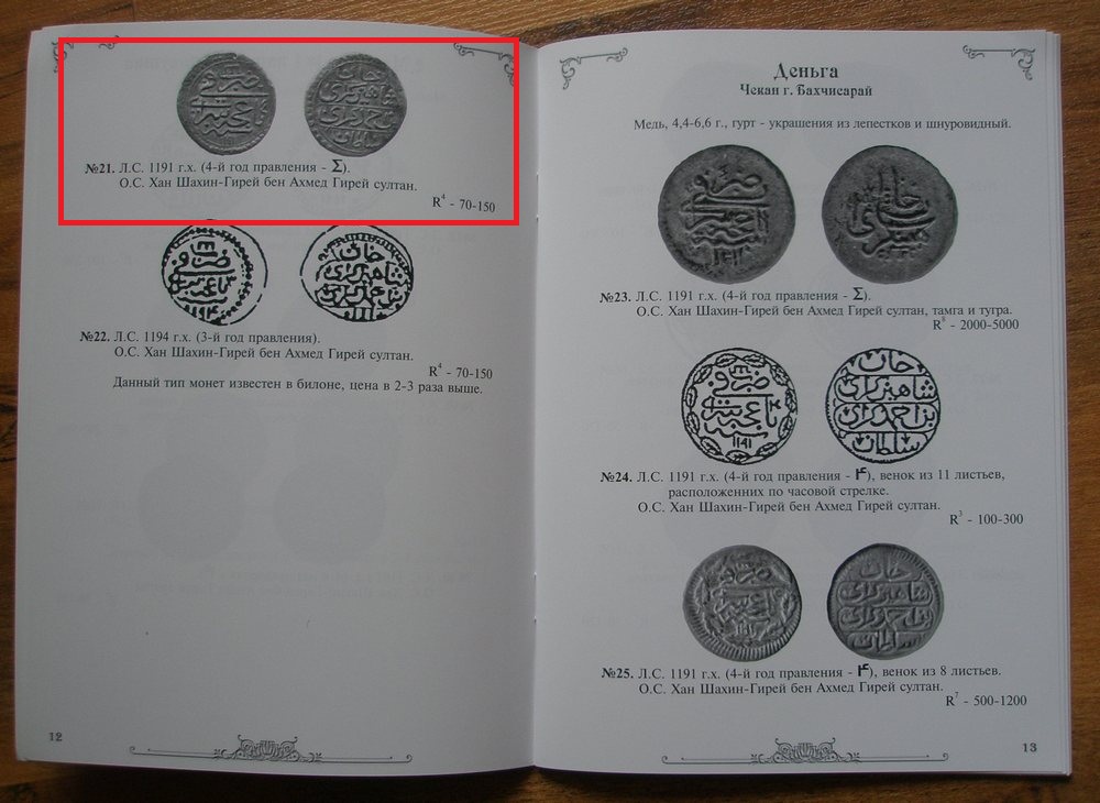 Описание монеты:вес-10гр. диаметр-29мм. гурт-чешуя металл-медь бахчисарайский монетный двор полунной хиджире-1191г.по нашему-1777г. 4-й год правления хана Шахин Гирея. ![]() Сообщение отредактировано Grinder: Nov 27 2014, 13:26 Вложенные эскизы изображений |