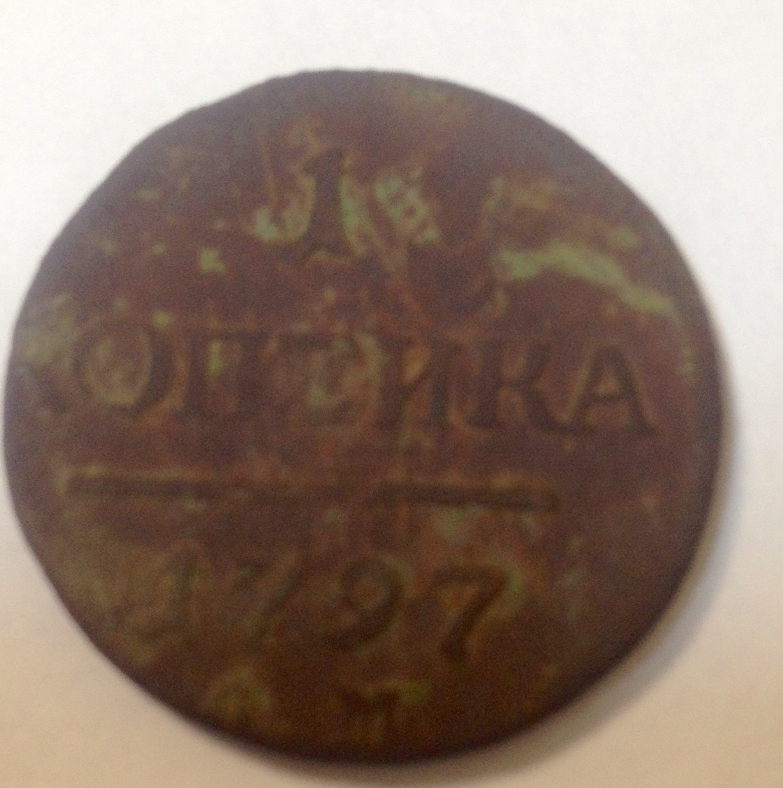 Патина слезла местами после чистки щеткой зубной а перед тем как фотографировать я мазал вазелином чтобы более четко рисунок был виден на фото. Я и продавать монетку не собираюсь в ближайшее время просто интересно сколько люди готовы отдать за нее, так скажем ценность находки уточняю