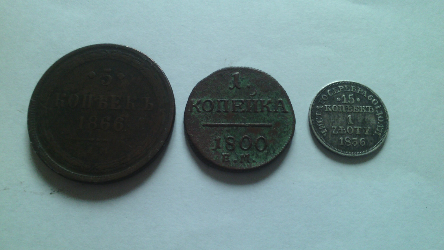 подскажите по стоимости. 5 копеек 1866 года- 100-200 руб. 1 копейка 1800 года- 35-50 руб 15 копеек- 1 злотая 1836 года- 750-1000 руб. (ИМХО) -------------------- Если я выиграл Ваш лот,сообщите пожалуйста в личку.