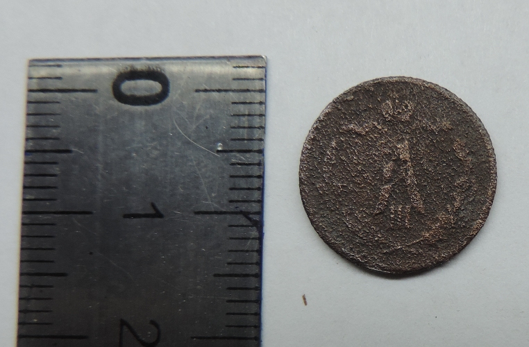 Пятачок сточен-явно намеренно..У нас в деревнях до сих пор точат медь и добавляют в корм курям и коровам(в лечебных целях..)