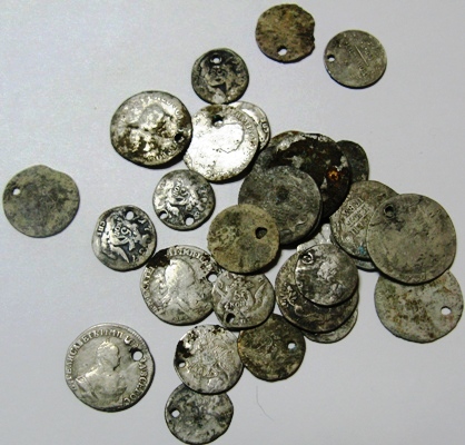 У обоих монет одна сторона (в особенности у полушки) ещё можно расчистить. А вот на другой стороне большая часть оригинальной поверхности отсутствует. -------------------- Границы реставрации заканчиваются там, где начинается гипотеза