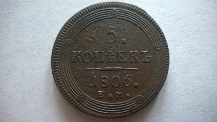 QUOTE(Kostj @ Apr 23 2015, 13:36) Прошу помощи в оценке монеты 5 копеек 1806г. ЕМ. С ув.. 2000-2500 |