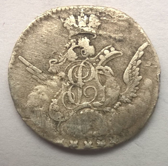 Добрый день, интересует стоимость монеты 5 копеек 1755 года спб, в таком состоянии, С Ув атк.