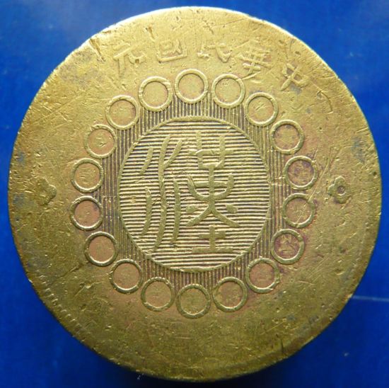QUOTE(Westnik @ Dec 8 2015, 09:21) Добрый день всем. Просматривал фото монет разных, но такой не нашел. Монета сделана из латуни, весом 17,5 грамма, диаметр 36,9 мм., толщина 2,1 мм. Помогите пожалуйста с её происхождением и ценой. Китайская республика 1913г(предположительно т к видно плохо)г. провинция Сычуань (Szechuan) - по конфигурации элементов монеты, т к изображения провинции стерто, номинал 100 кеш (cash). Можно посмотреть в каталоге Краузе, только он инглиш. Цену сказать сложно, ибо год и точный каталожный номер не могу определить. В сети указывается каталожный номер - Y#450a. Что за каталог я не знаю, но по картинке в андесе вроде все сходится. Сообщение отредактировано new_yurok: Dec 8 2015, 22:44 -------------------- Не оставляй другому яму, сам в нее попадешь!