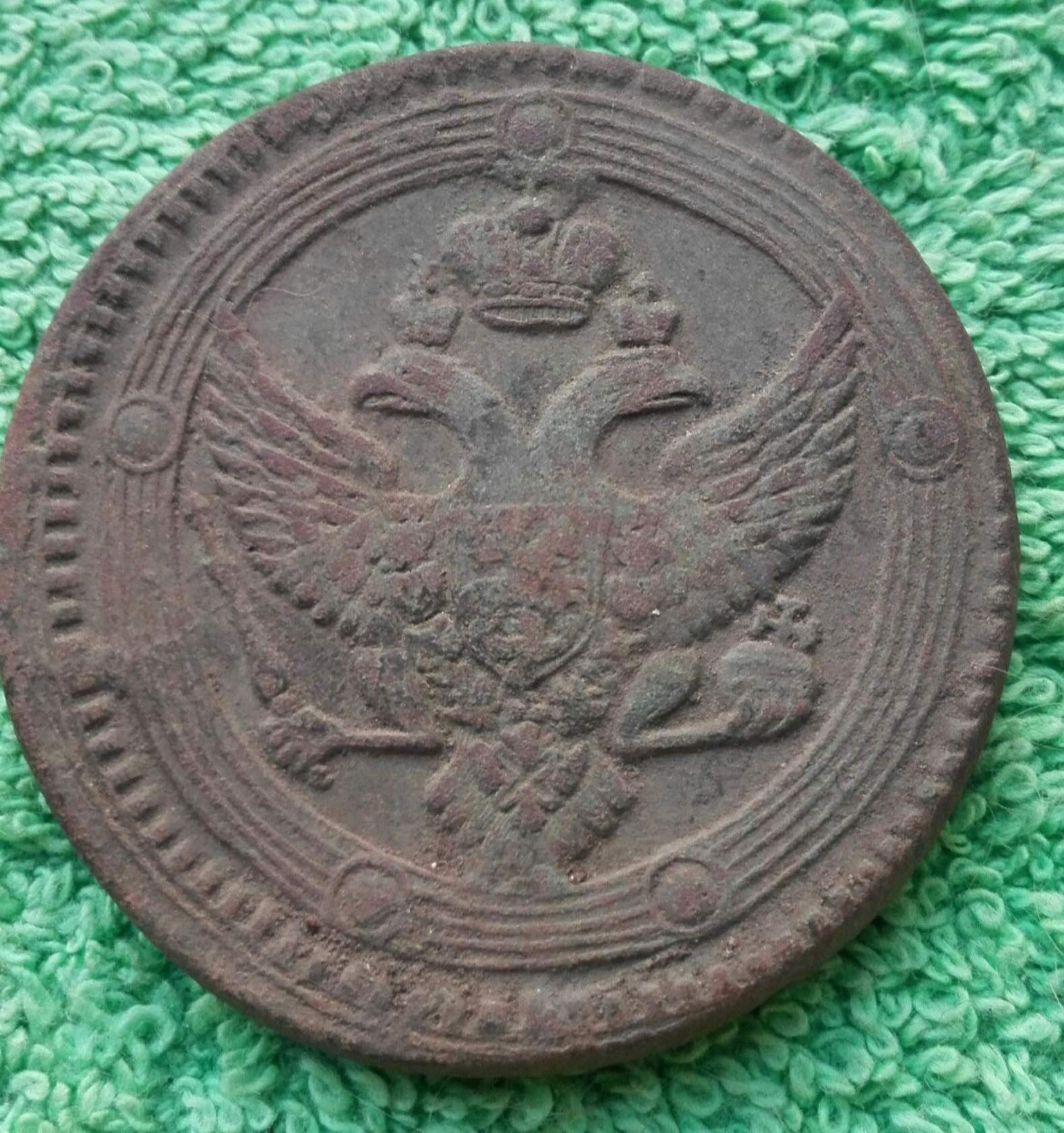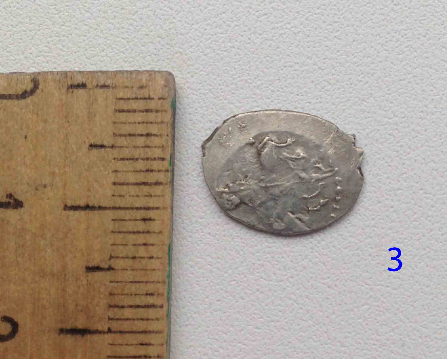 Нашел вот такую монетку. Подскажите, пожалуйста: 1) Что это за монетка? 2) Какой ее возраст? 3) Стоит ли выставлять ее на продажу (имею в виду будет ли интерес)?. Если да, подскажите какая ее ориентировочная стоимость? Монета не чистилась, а только помыта под струей воды. Вес монеты: 2,13 гр. Размер: 21,79 Х 17,05. Надеюсь на Вашу помощь в определении и оценке! Спасибо! Вложенные эскизы изображений |