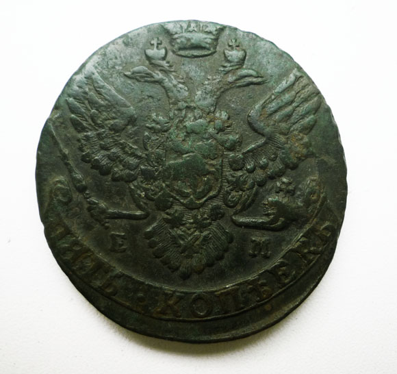 Доброго времени. Подскажите по монете. Год вроде 1766 видится СПМ, ПЕРЕЧЕКАН видится. Есть смысл на аукцион выставлять?