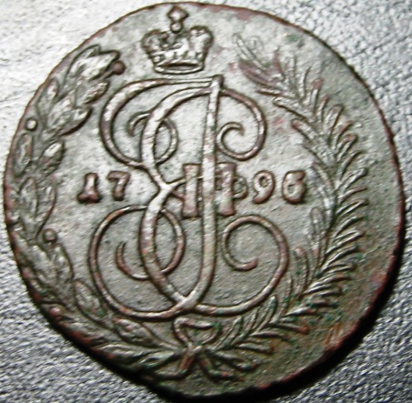 Пятак этот большего диаметра и меньшей толщины, чем другие пятаки, со стороны орла предположительно следы от шнуровидного гурта и на вензеле Екатерины есть странные залипухи. Если это перечекан, то дорого ли он стоит с такими следами перечекана.